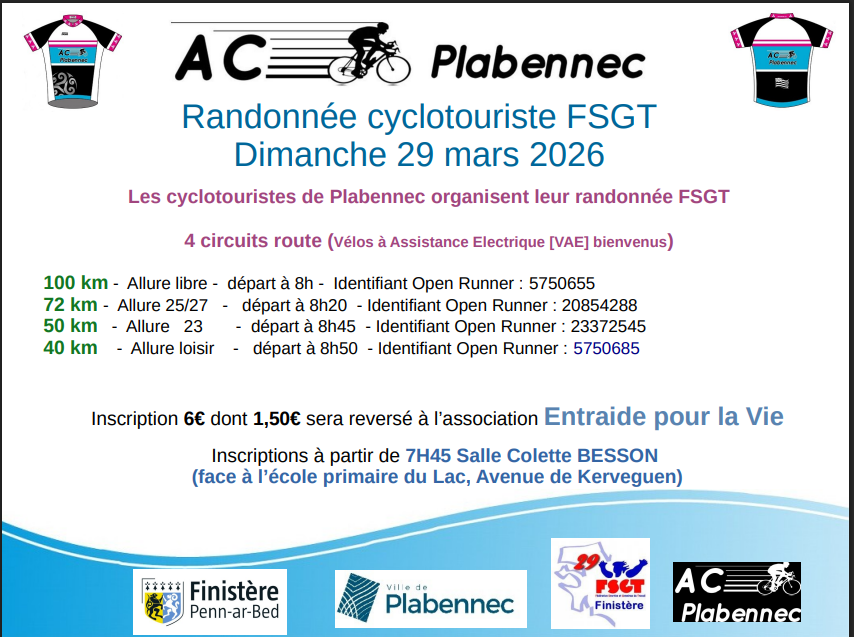 Dimanche 29 mars , le club FSGT de Plabennec organise une randonnée